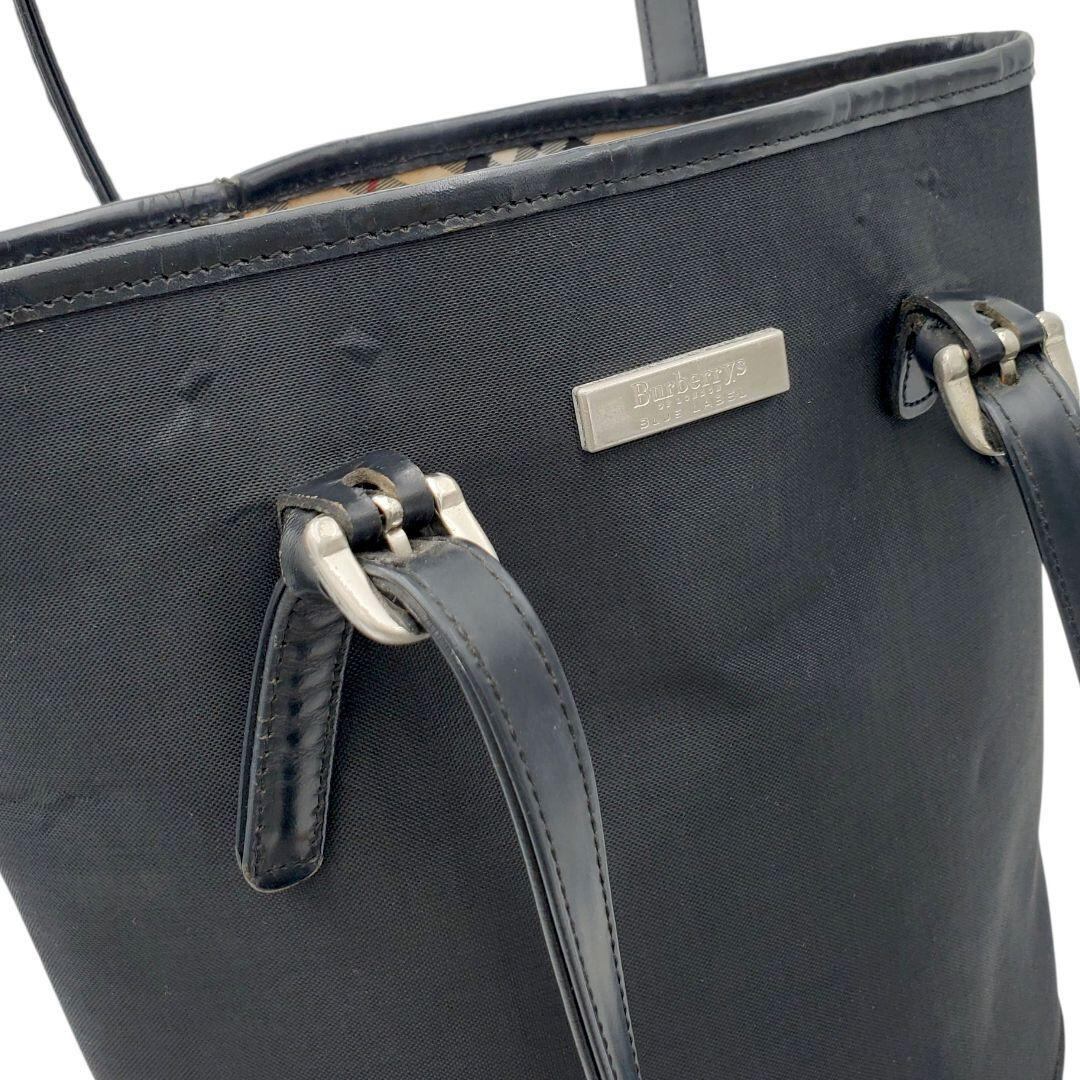 Burberrys バーバリーブルーレーベル トートバッグ バケツ ノバチェック ナイロン レザー 切り替え 肩掛け
