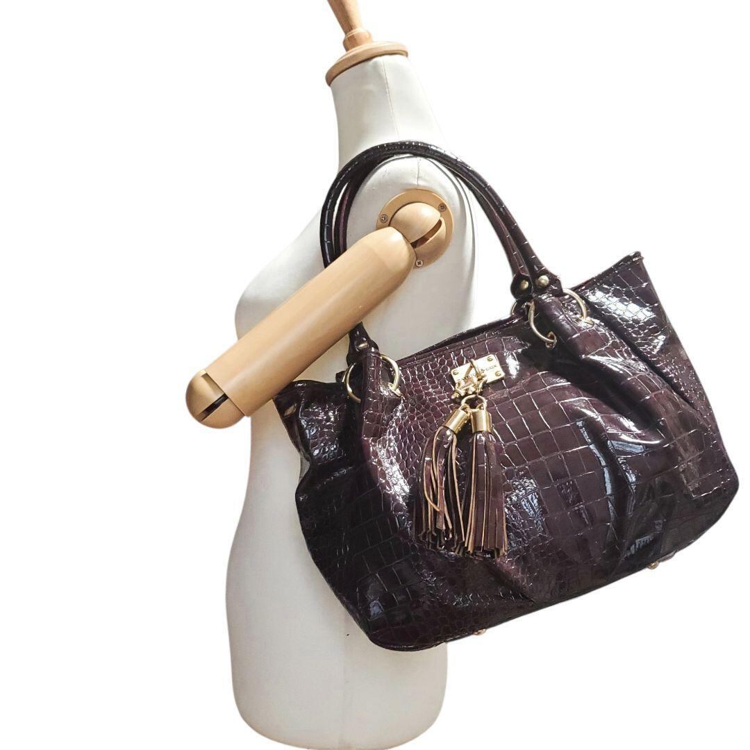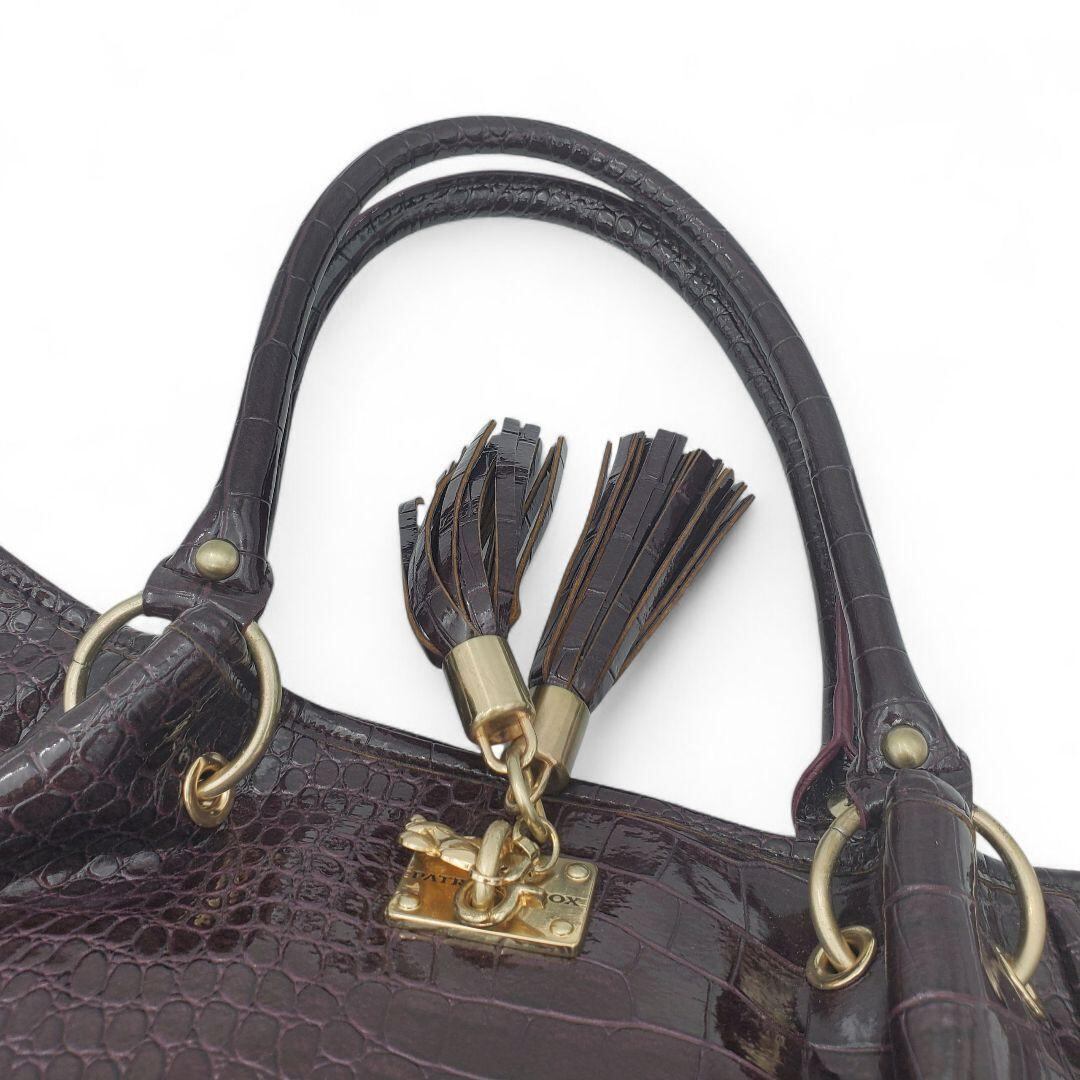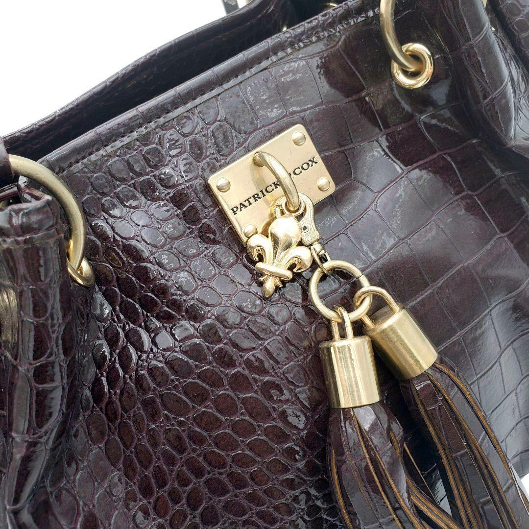 PATRICK COX パトリックコックス ショルダーバッグ トートバッグ クロコ型押し クロコダイル風 エナメル タッセル 肩掛け 紫