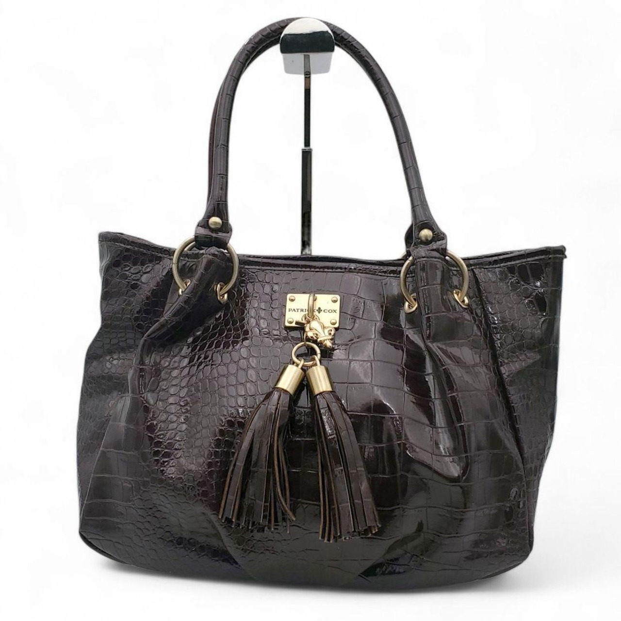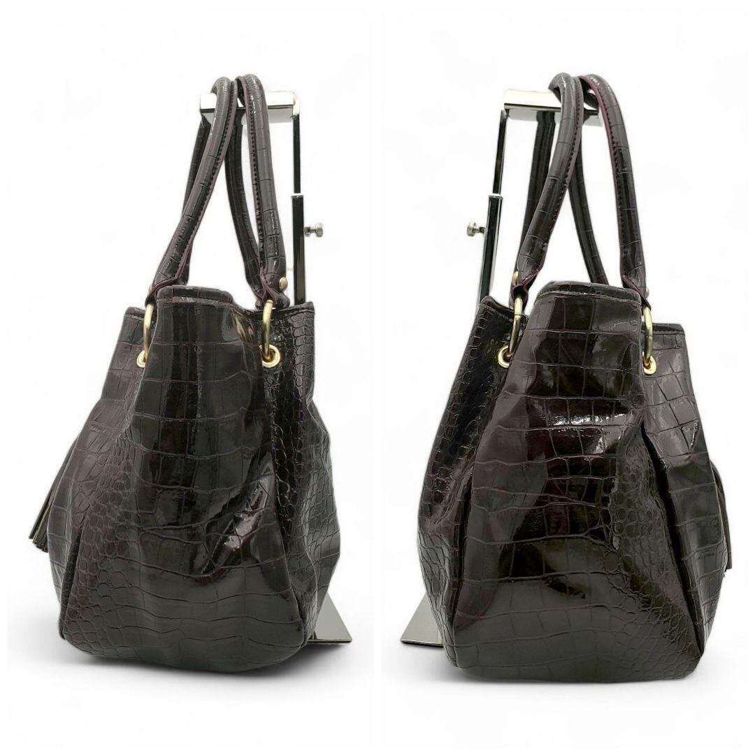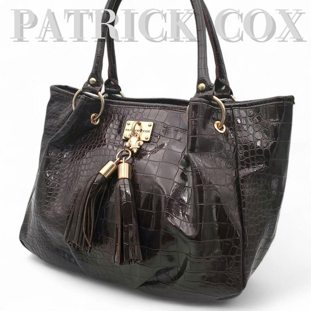 PATRICK COX パトリックコックス ショルダーバッグ トートバッグ クロコ型押し クロコダイル風 エナメル タッセル 肩掛け 紫
