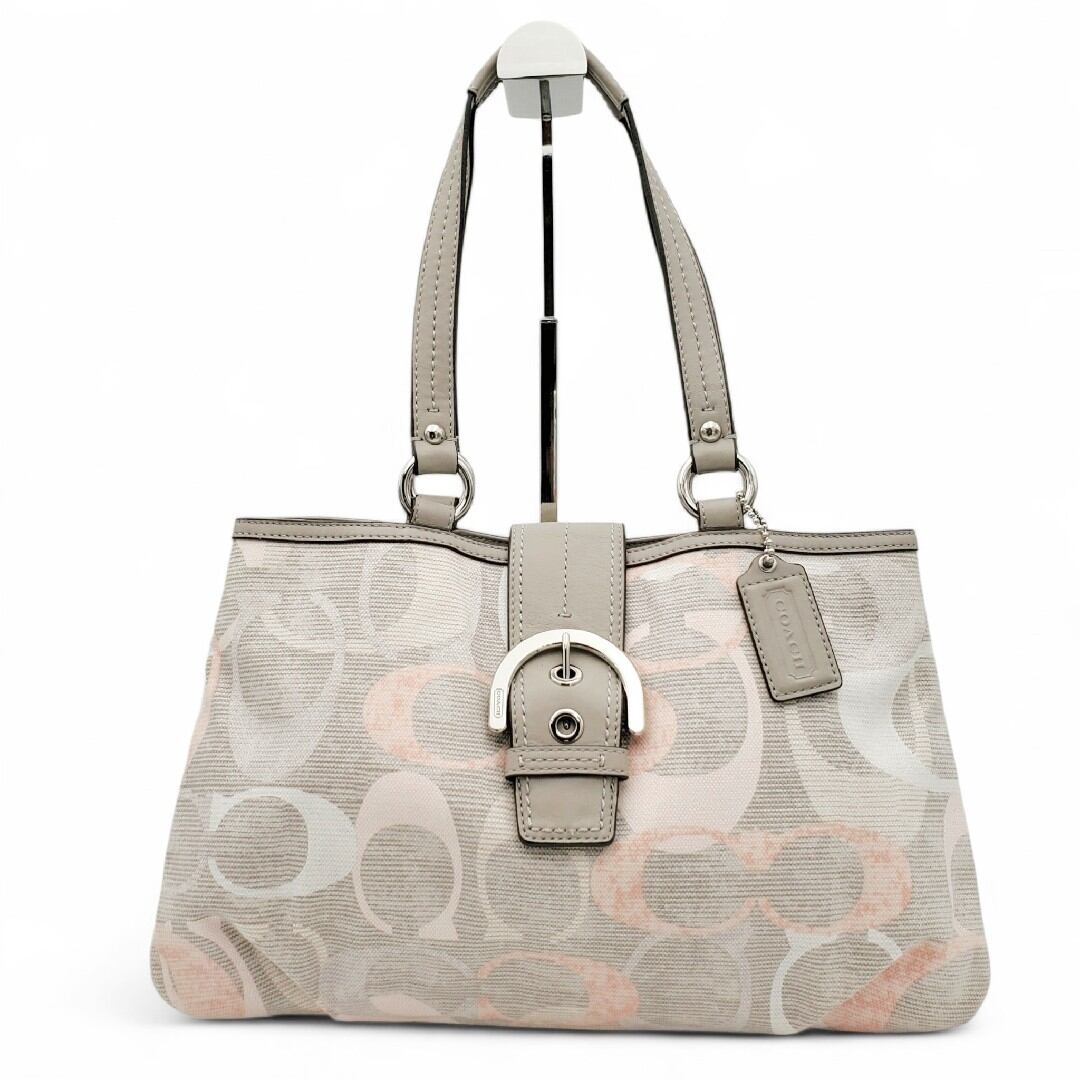 COACH コーチ ショルダーバッグ トートバッグ ソーホー シグネチャー オプティック リネン レザー 肩掛け 通勤通学 美品 希少