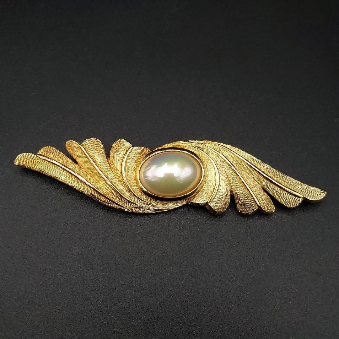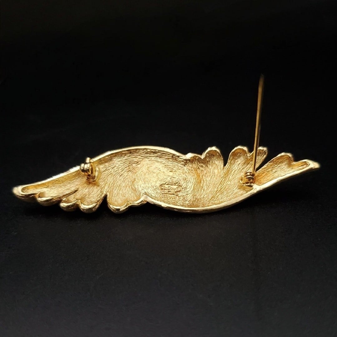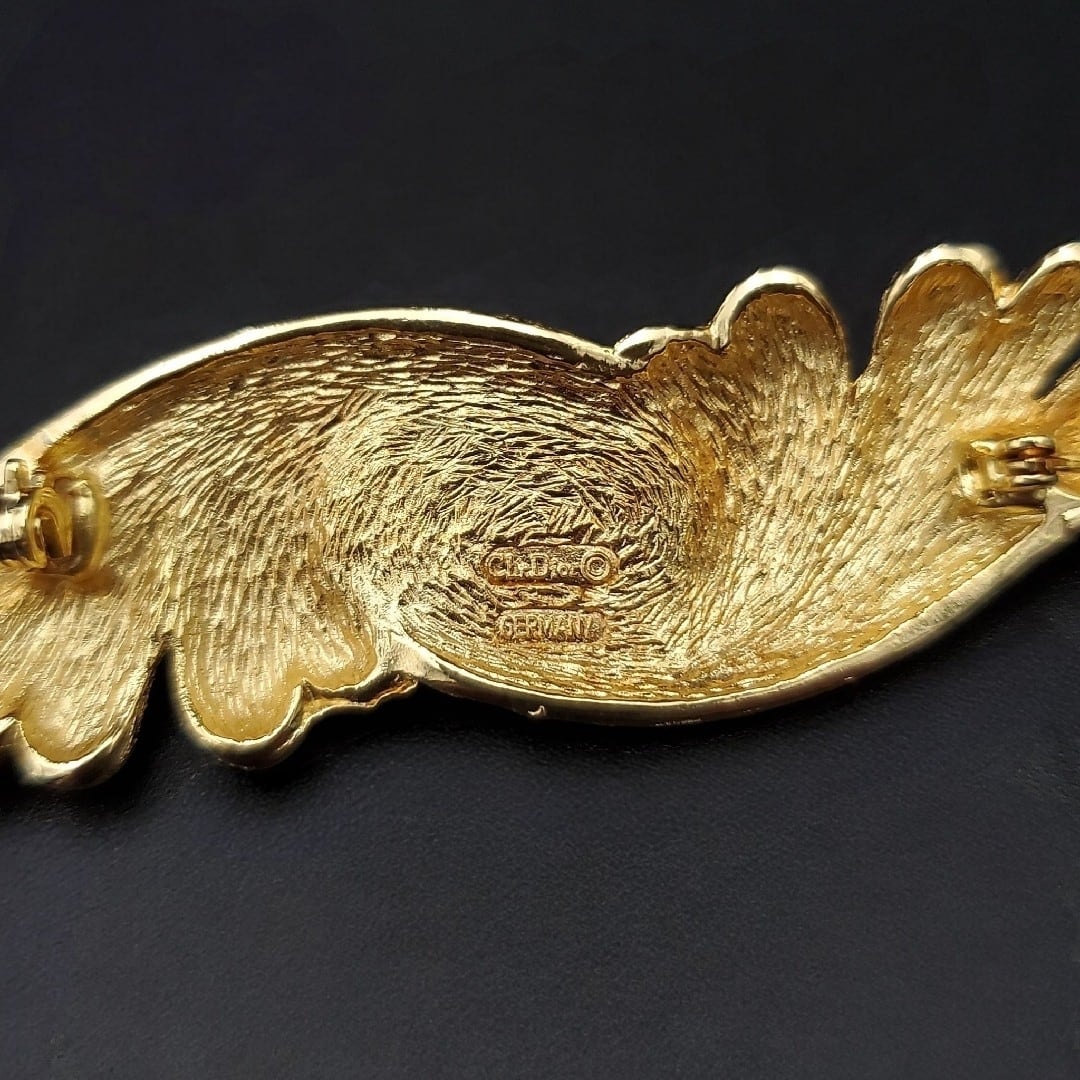 美品 Christian Dior クリスチャンディオール ブローチ フェイクパール 羽モチーフ ゴールドカラー Germany製 ドイツ製 80s 90s 刻印 ヴィンテージ オールド ギフト プレゼント 贈り物